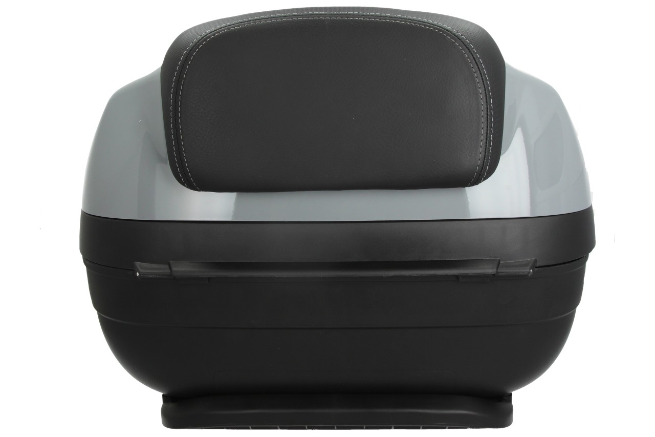 Top case con sistema de montaje rápido. Ofrece espacio para un casco modular. Top case pintado en el color del vehículo, con cojín trasero de confort para el pasajero, en el mismo material y acabado del asiento.