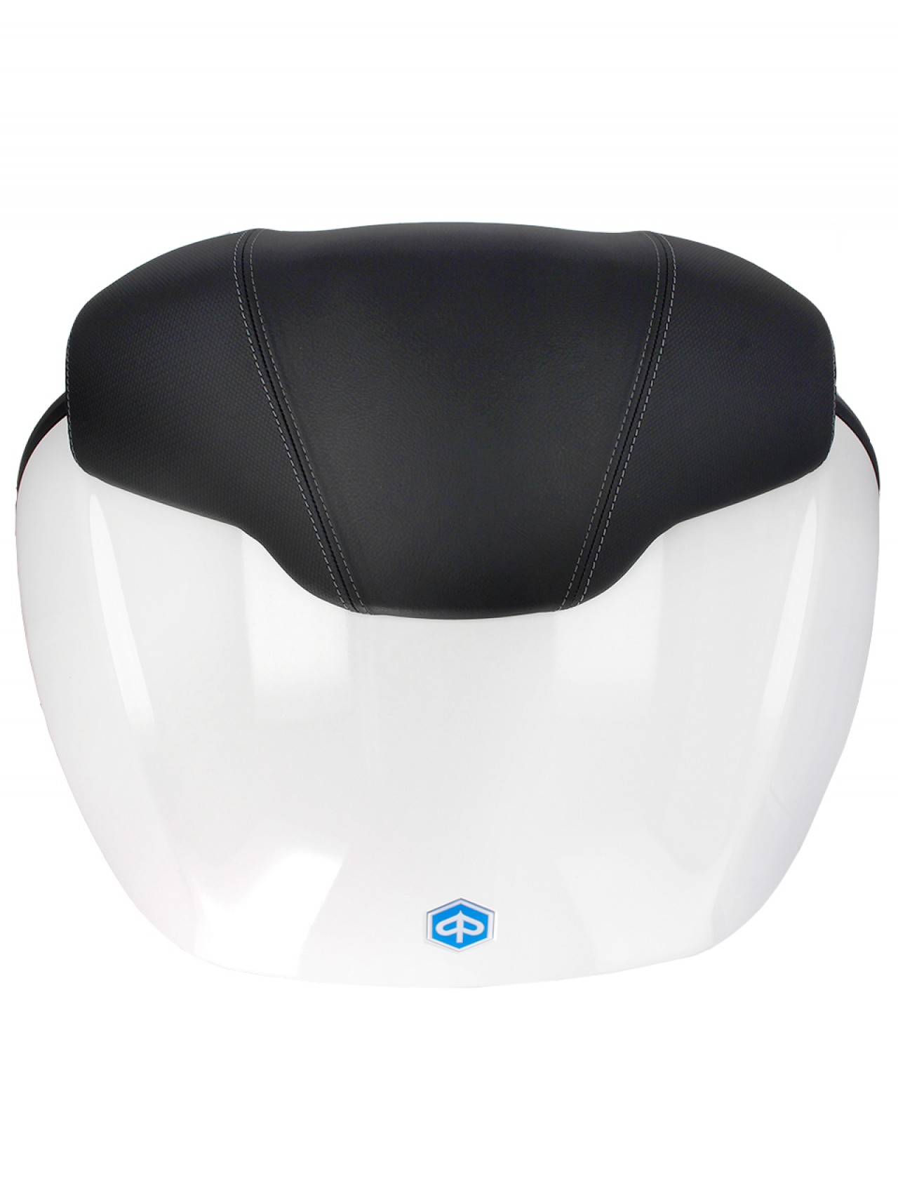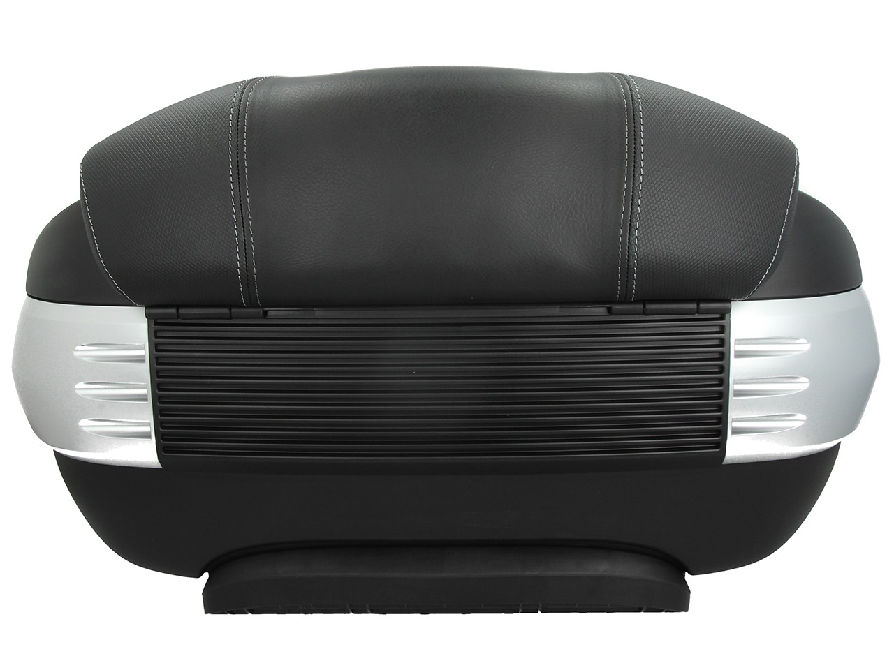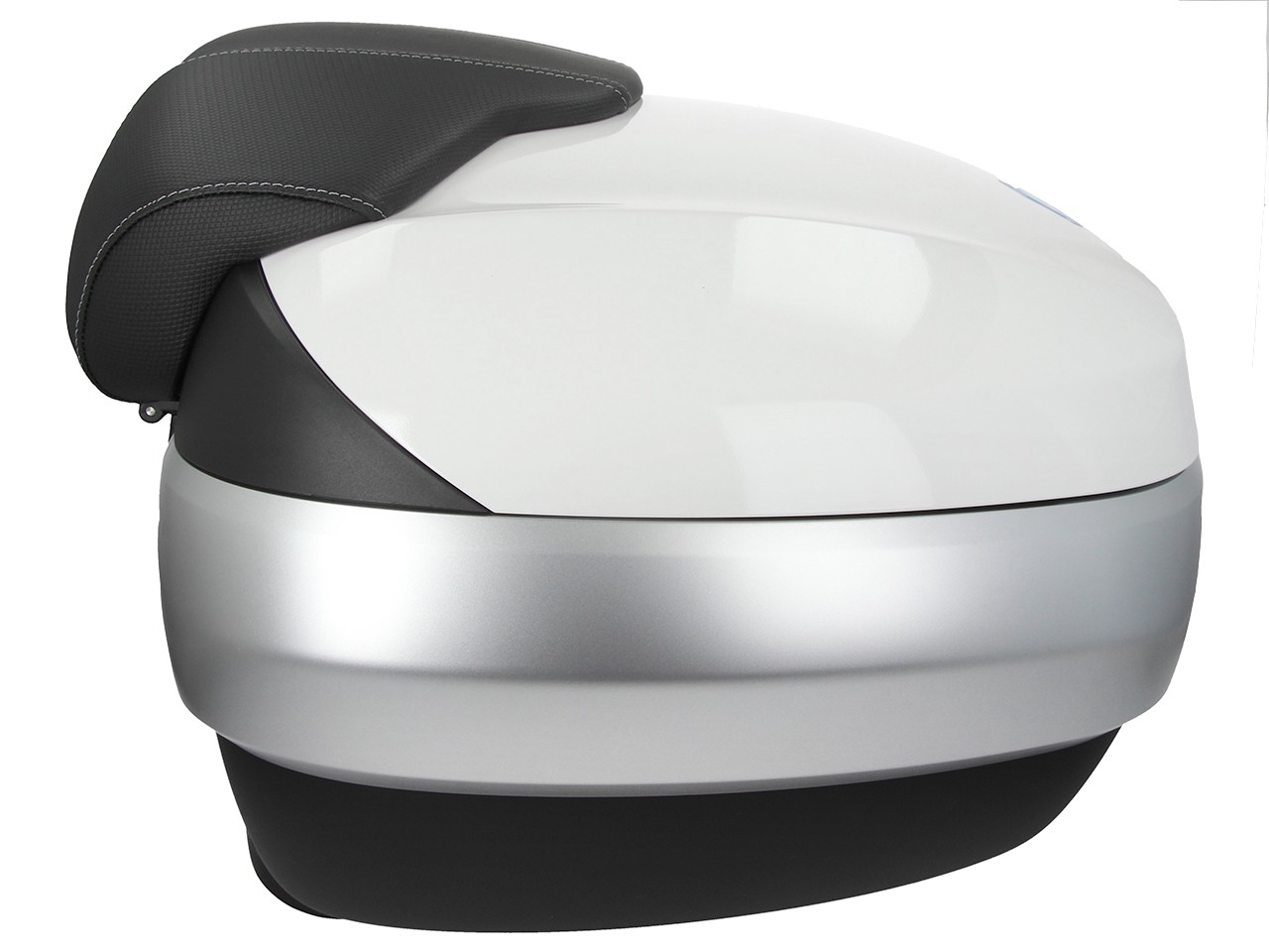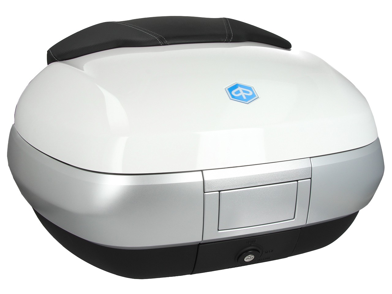 Amplio, con sistema de montaje rápido. Ofrece espacio para 2 cascos modulares. Carcasa superior pintada en el color del vehículo, con acolchado trasero de confort para el pasajero, en el mismo material y acabado del asiento. Bolsillo para documentos en el interior y correas elásticas para estabilizar el equipaje.