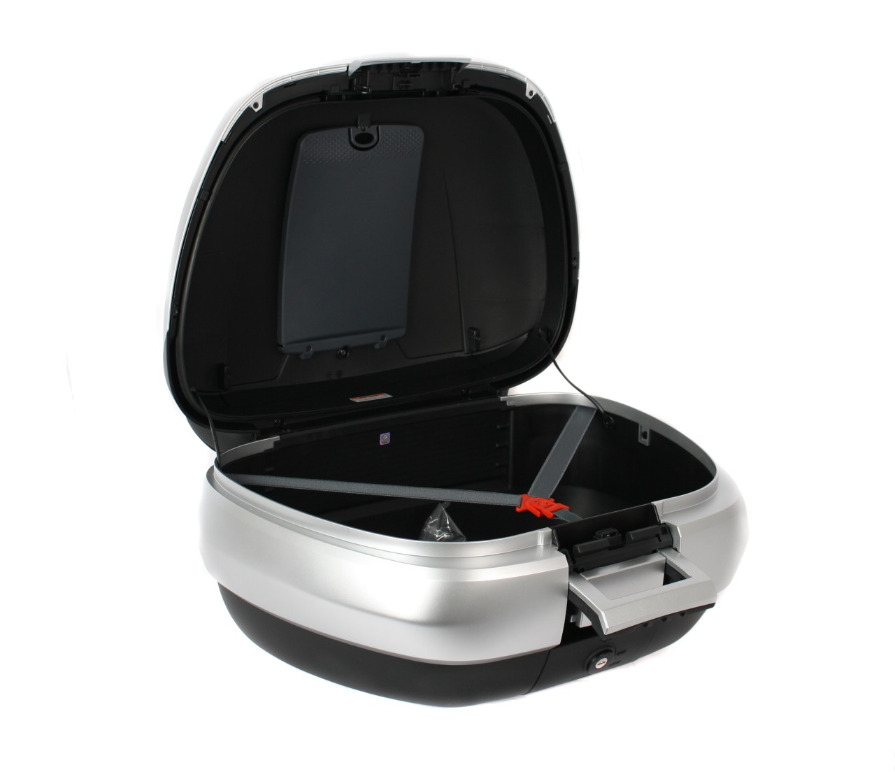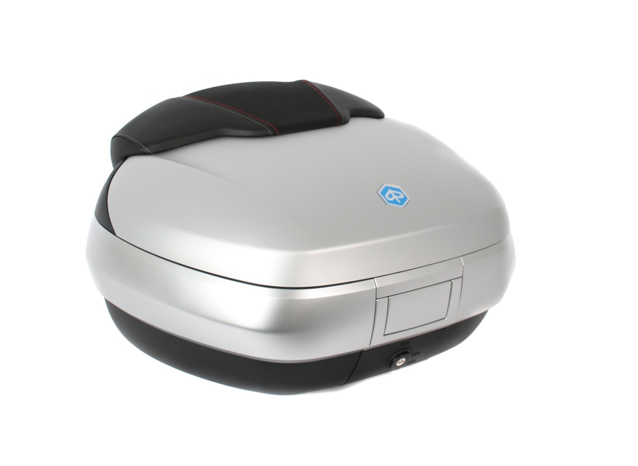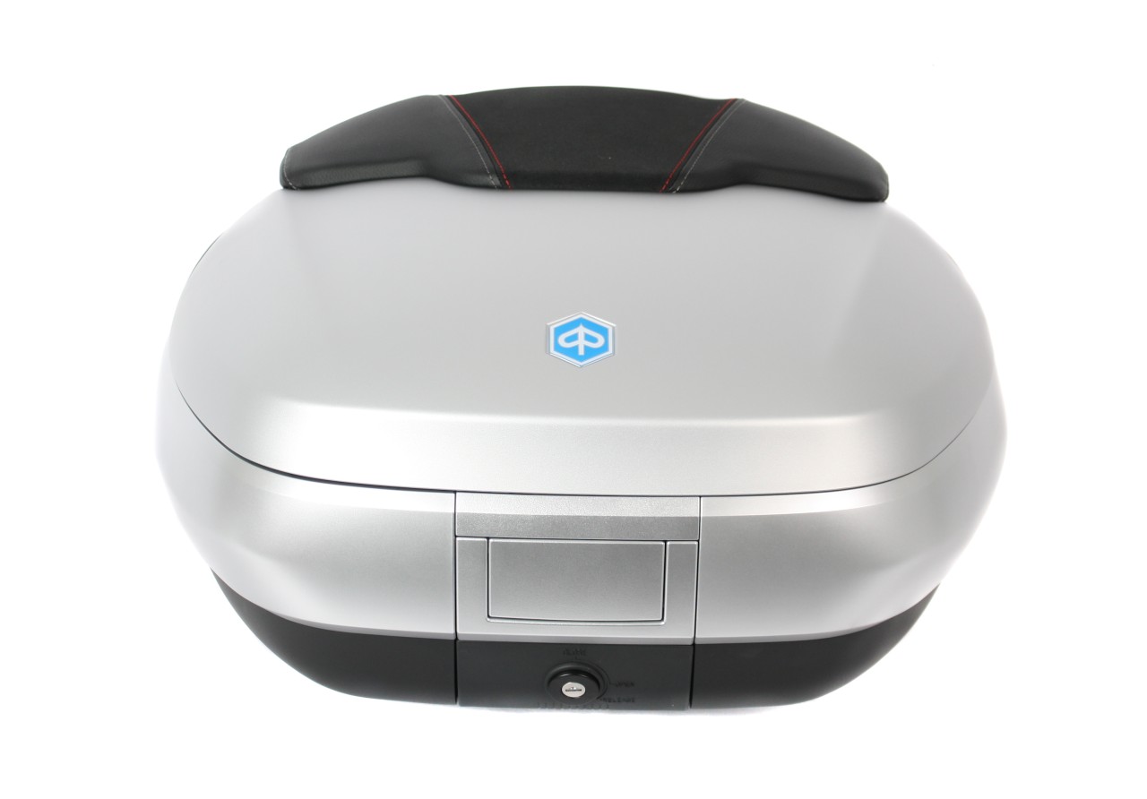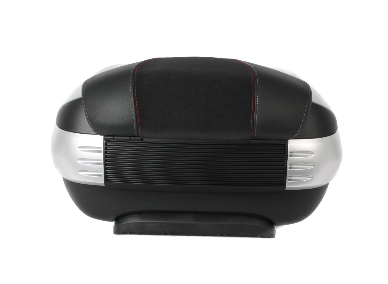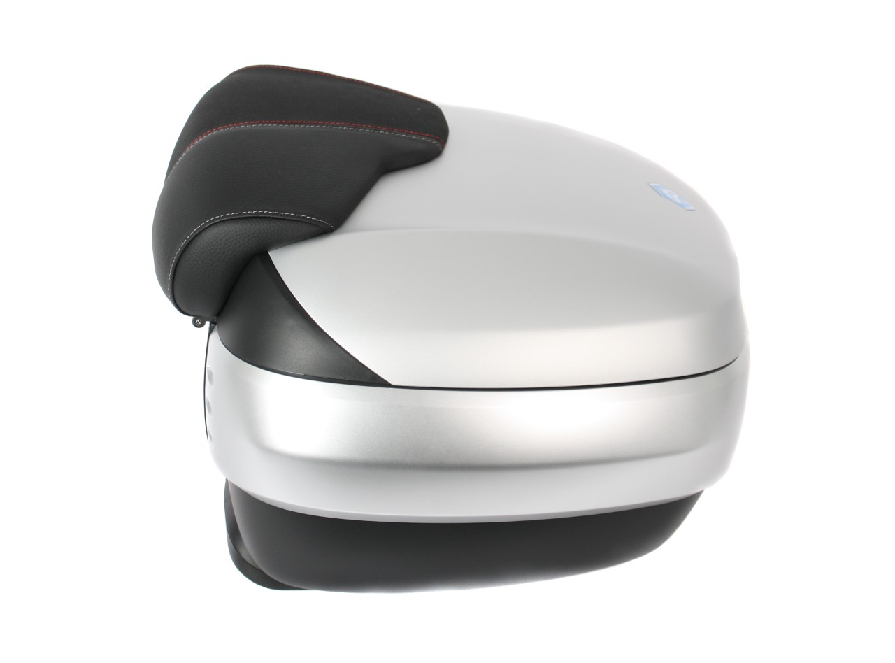 Amplio, con sistema de montaje rápido. Ofrece espacio para 2 cascos modulares. Carcasa superior pintada en el color del vehículo, con acolchado trasero de confort para el pasajero, en el mismo material y acabado del asiento. Bolsillo para documentos en el interior y correas elásticas para estabilizar el equipaje