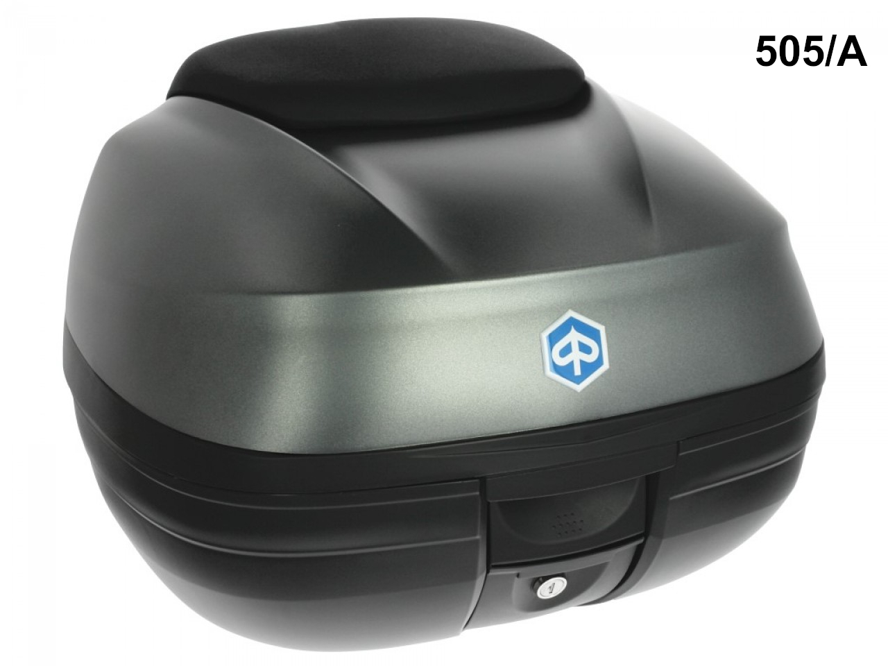 Caja superior de liberación rápida. Espacio para un casco modular. Carcasa superior pintada del mismo color que el vehículo. Se completa con el cómodorespaldo del pasajero