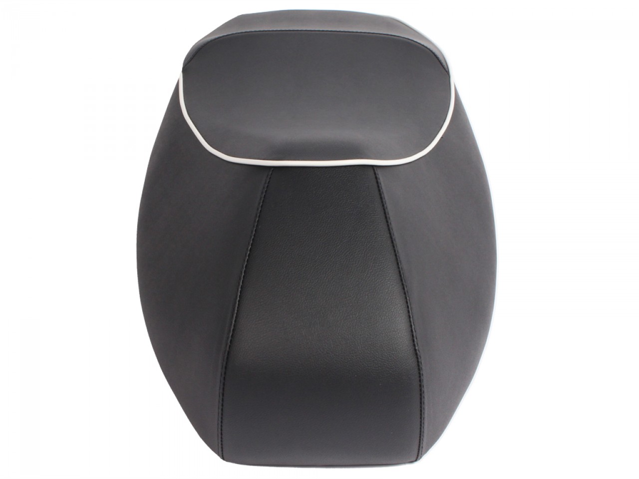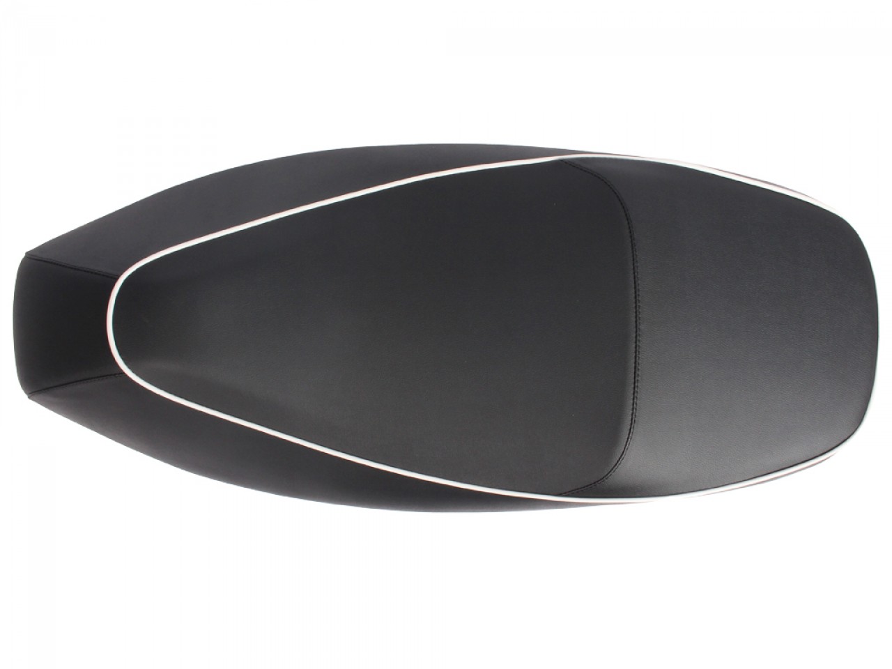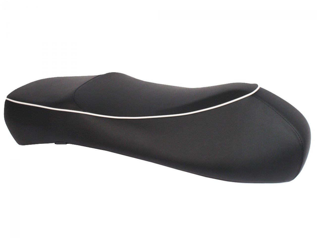 Asiento doble para Vespa GTS en polipiel negra con ribetes blancos.