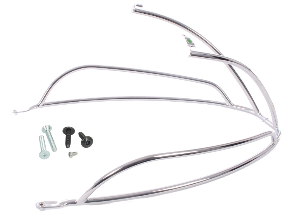 Las cubiertas cromadas siempre se han utilizado para resaltar el carácter inconfundible de la Vespa. El protector trasero combina un diseño elegante con la protección y contribuye al carácter único de Vespa, protegiendo los elementos de la carrocería contra golpes y caídas.