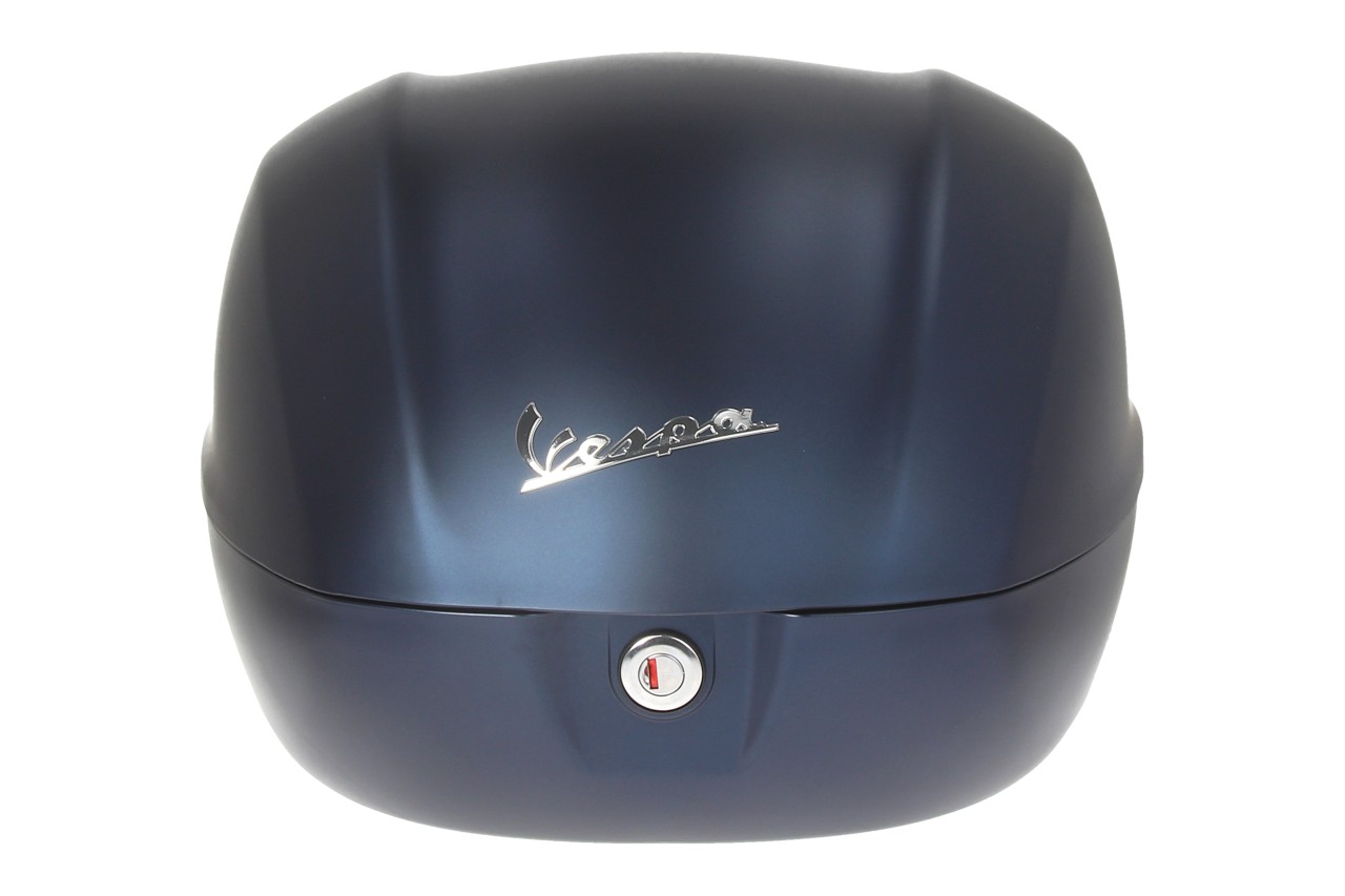 Información del producto "Kit baúl 32L azul opaco profundo mate (288/A), cojín de respaldo negro para Vespa Primavera"