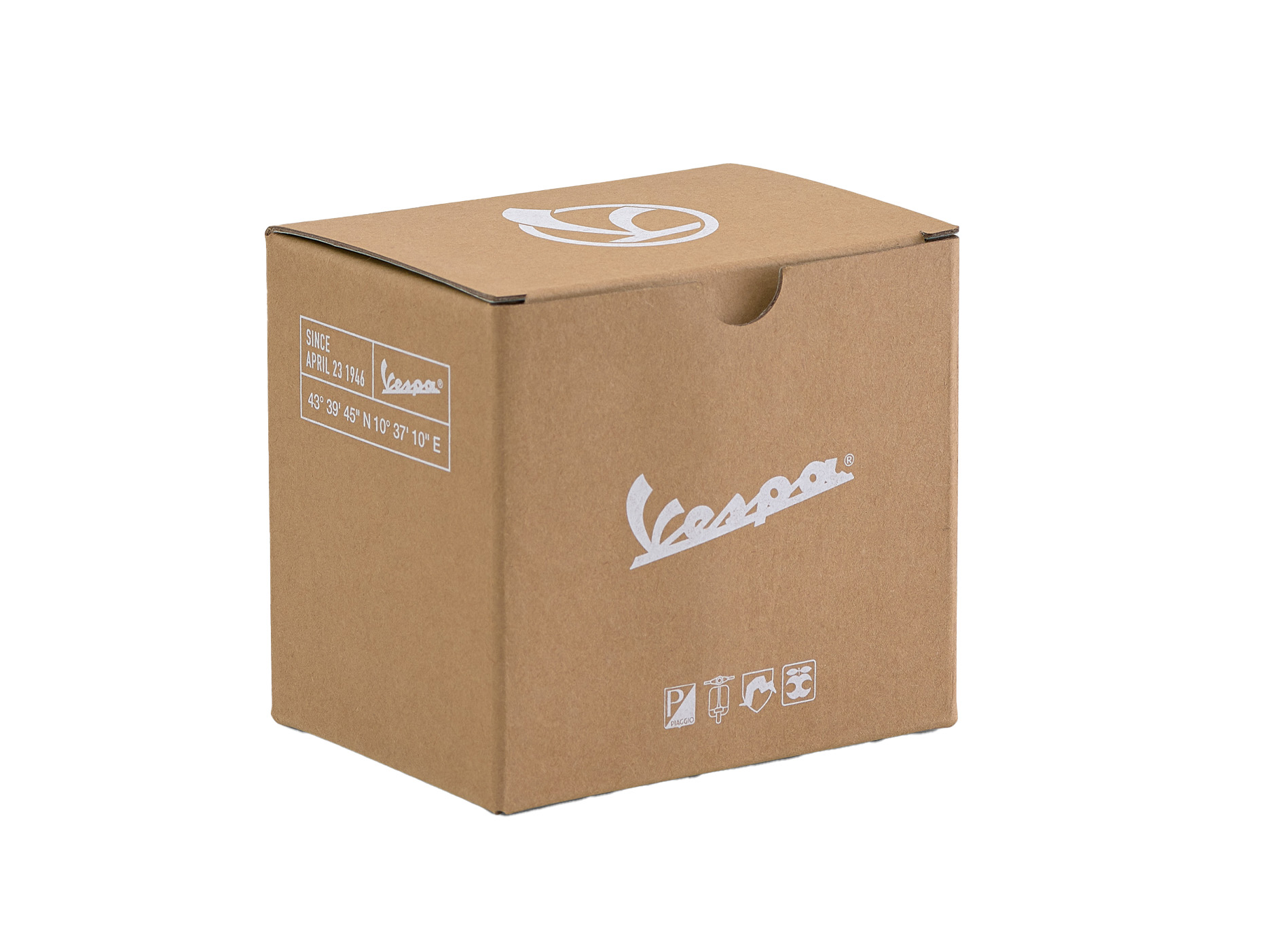Esta taza, que enriquecerá tu pausa para el café con originalidad y diversión, se presenta en colores clásicos y con un sutil estilo Vespa.