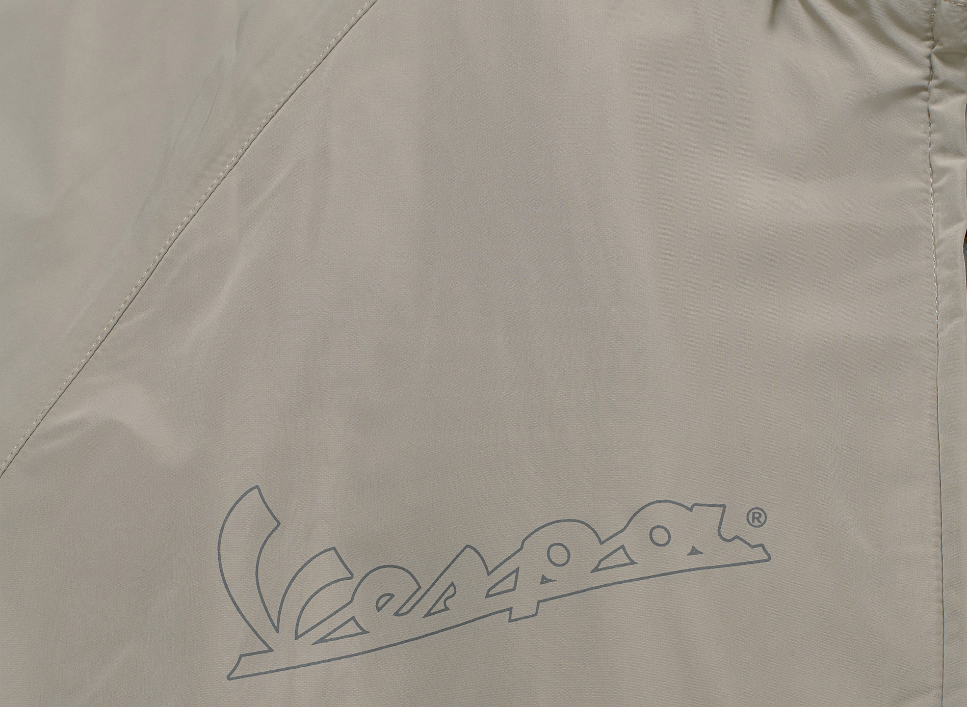 Cortavientos suave y ligero con tratamiento hidrófugo. La chaqueta está personalizada con el logotipo de Vespa y el nuevo gráfico Vespa DEC, que hace referencia a la historia de la marca. Un forro de malla transpirable del mismo color proporciona un confort adicional. La capucha puede extraerse de la cremallera invisible situada en la parte trasera del cuello. La nueva etiqueta interior impresa es sólo un ejemplo de la esmerada atención al detalle que hace de esta chaqueta una prenda excepcional. El color de la hoja se ha realizado con un tejido reflectante.