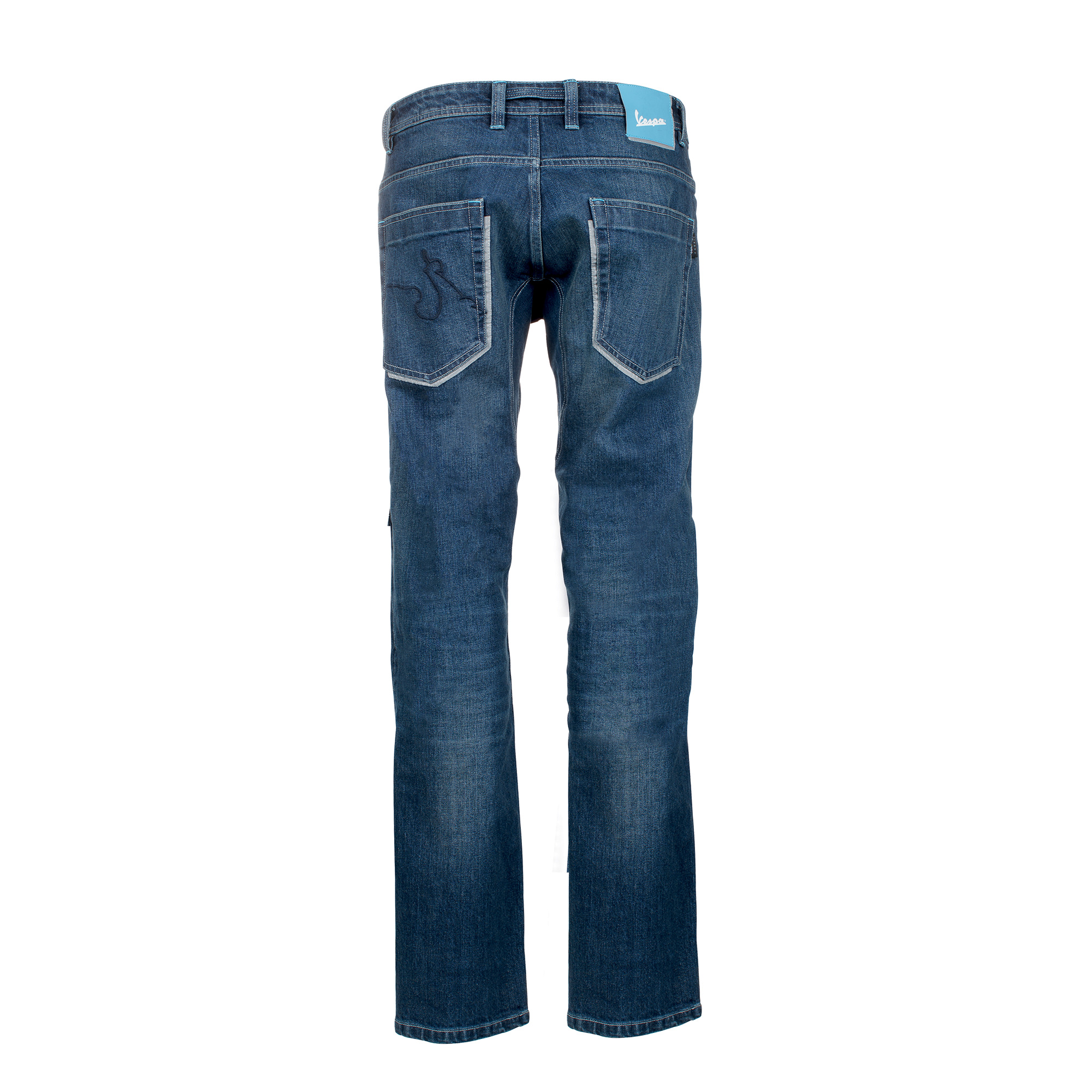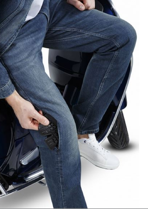 Confeccionado con tejido Cordura® resistente a la abrasión / mezcla de algodón y paneles elásticos para una máxima comodidad. Certificado prEN17092. Rodilleras certificadas según EN 1621-1: 2012 incluidas (acceso desde el exterior del pantalón). Los protectores de cadera "Lite Warrior" (liv.1) se venden por separado. Bolsillos traseros perfilados con estampado reflectante. Costuras Vespa Shape en el bolsillo trasero (tono sobre tono) y estampado decorativo reflectante; Ajuste SLIM.