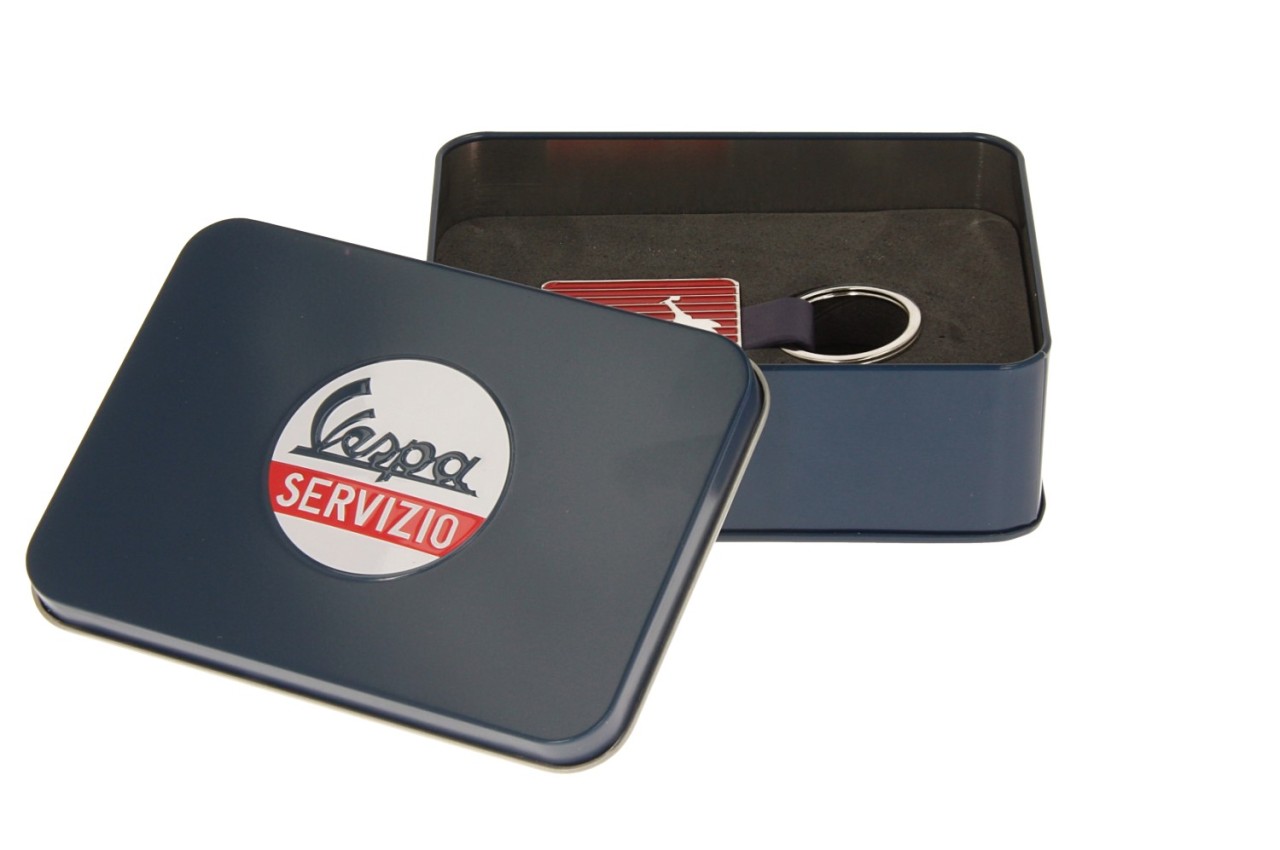 Llavero Vespa Colgante con modelo clásico de Vespa en caja de hojalata...más