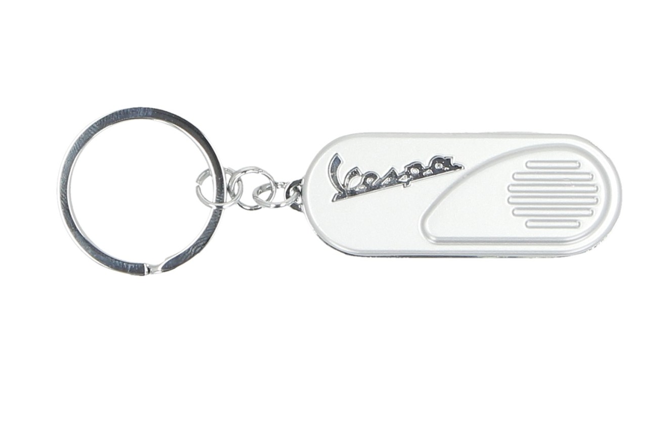 Información del producto "Llavero Vespa, capó lateral clásico plata"